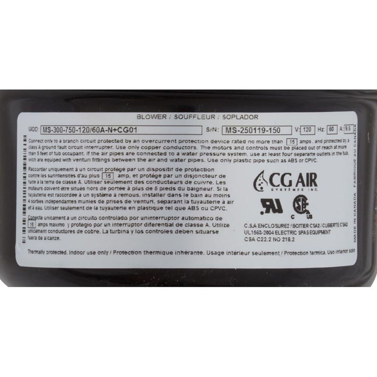 CG Air MS-30075012060AN+CG1 115v 9.5A Heater Blower with Muffler