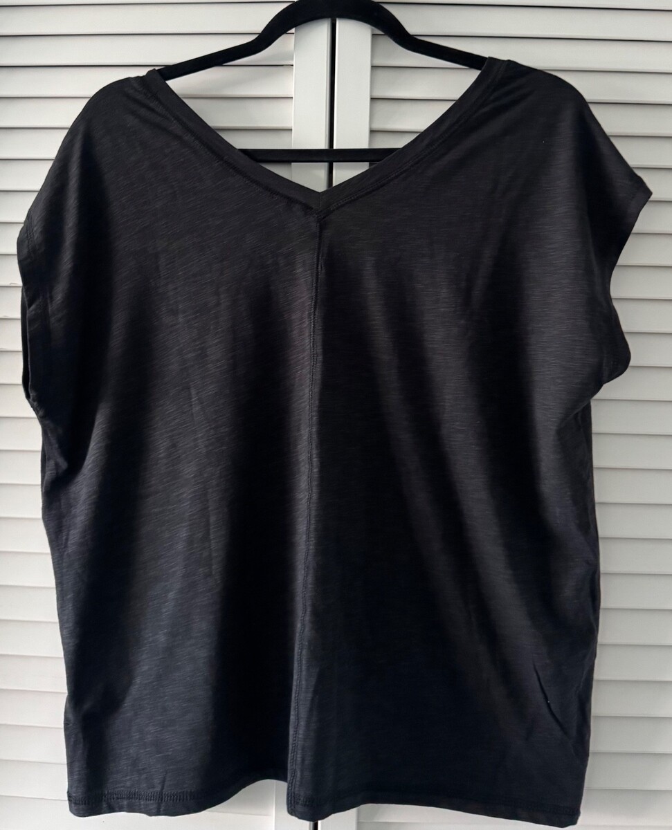Rachel Zoe Women Short Sleeve V-Neck Modal/Cotton Stretch Top Size M Black NWOT