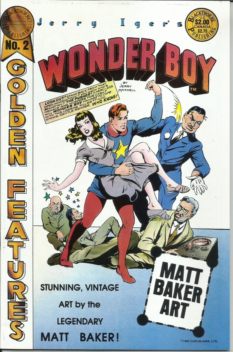 *Stories by Jerry Iger, credited as Jerry Maxwell. Art by Matt Baker. Cover by Matt Baker./ Reprints of classic comic books of the 1930s and 40s produced by the Jerry Iger comic studio, many of which featured powerful women protagonists and classic good-girl art. This issue focuses on long-forgotten superhero Wonderboy.