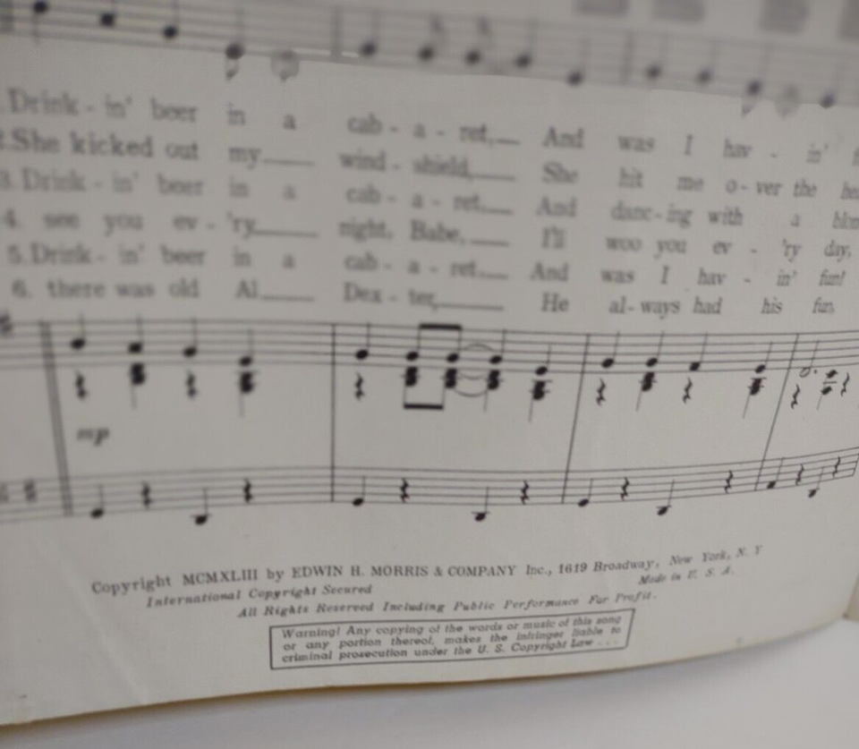 Vintage original sheet music. Has staple holes, creases, corner dings, and age wear. Complete.