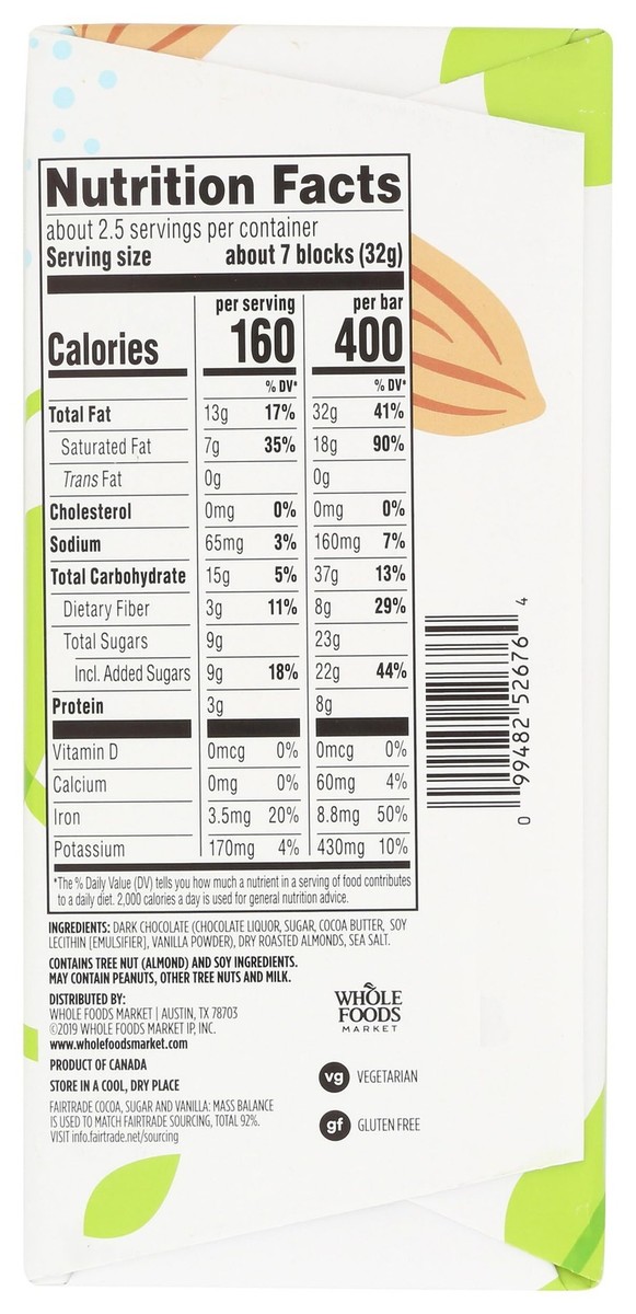 365 by Whole Foods Market, Almond Sea Salt Dark Chocolate Bar (12 Bars)