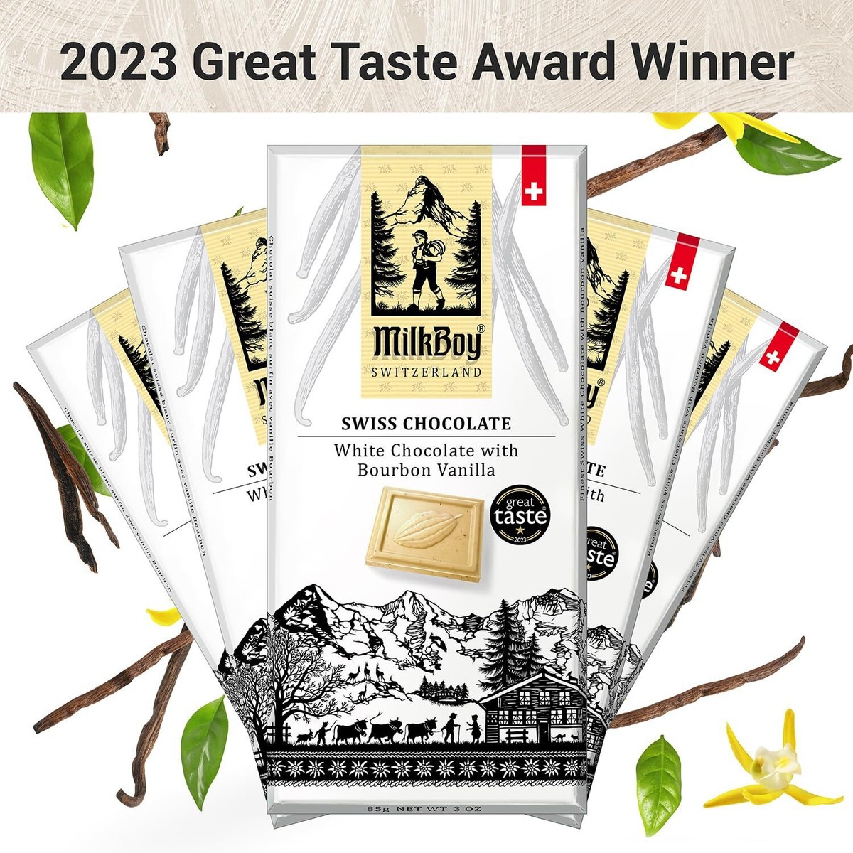 (10 Bars) Milkboy Swiss Chocolates White Chocolate Bourbon Vanilla Bars