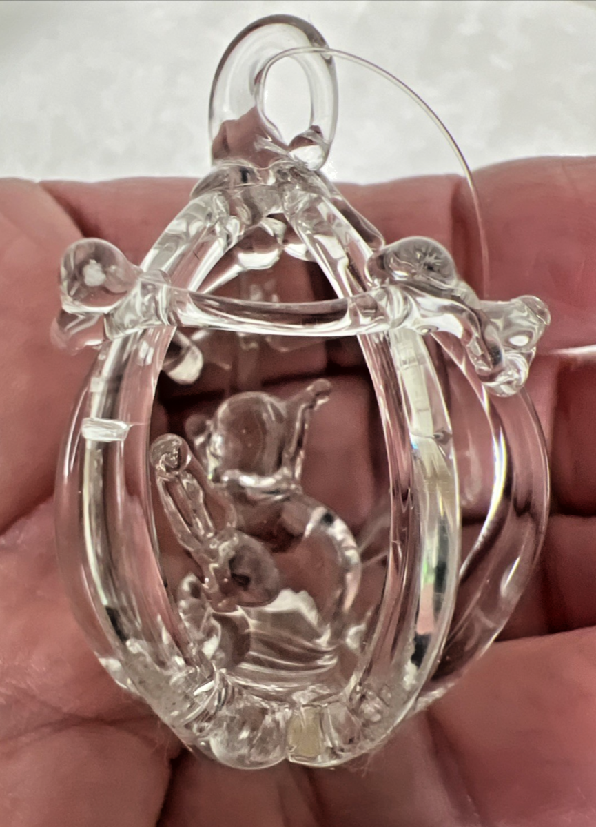 Vintage Crystal Blown Glass Birdcage Penguin Christmas Tree Ornament 2" Tall