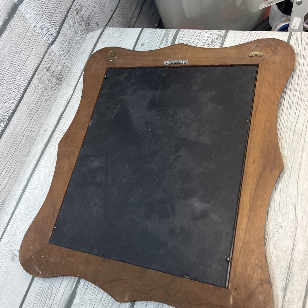 VTG Wooden Wall Mirror With Shelf, Floral Design, Cottage Farmhouse, 9x16”