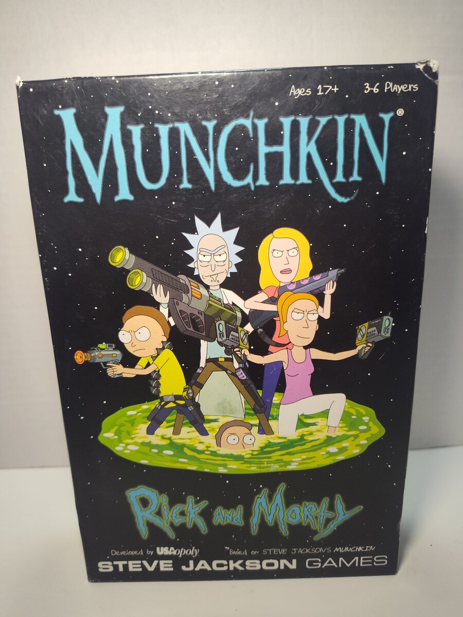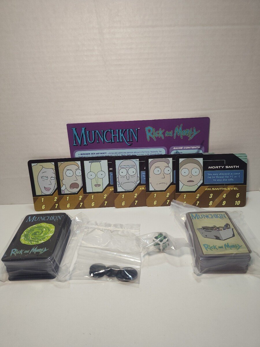 Fun crossover edition of Munchkin featuring characters and artwork from Rick and Morty. Cards have been counted and verified complete.