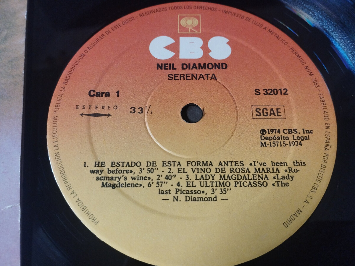 NEIL DIAMOND Serenade 1974 CBS S32012 Spain Edition - LP Vinyl 12" VG/VG