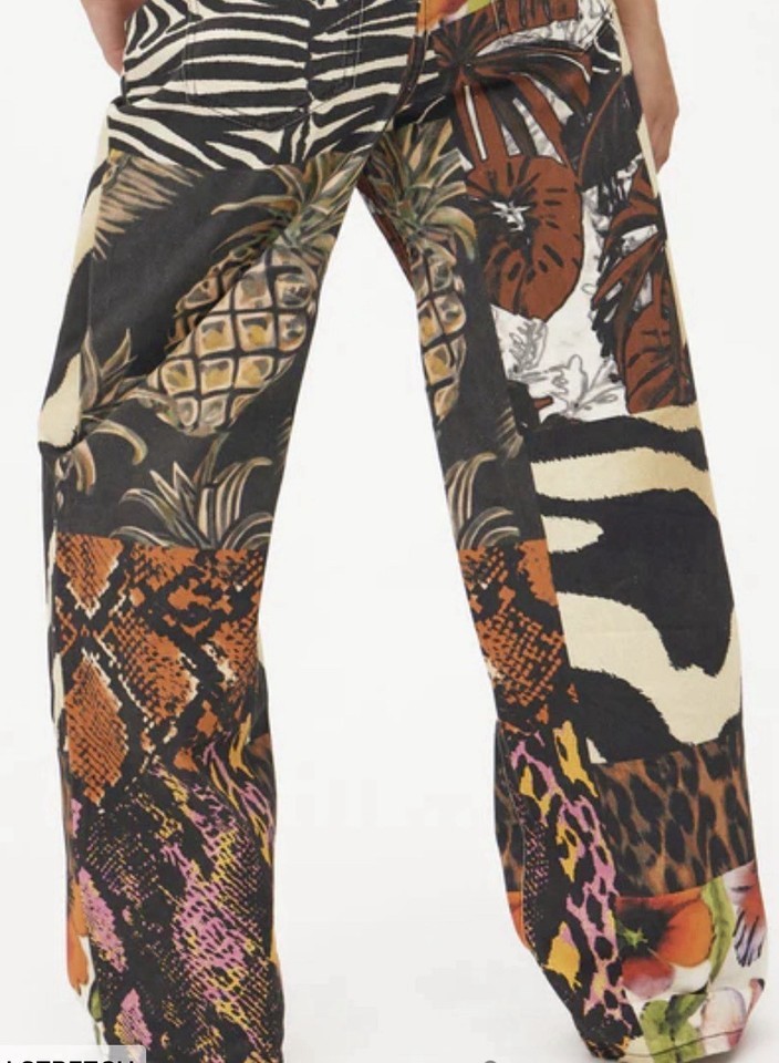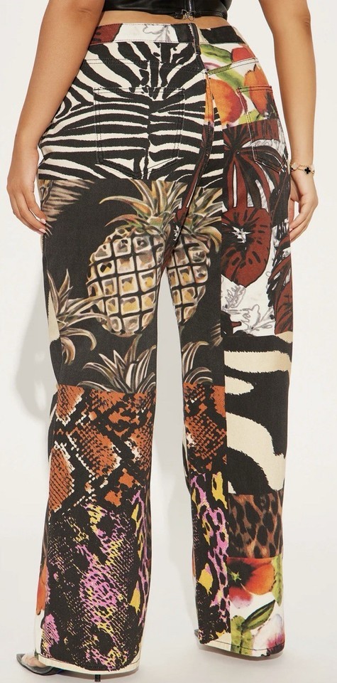 Fashion Nova Miami Mood Jeans Sz 9 Multicolor Baggy Jeans Zebra Flowers NWT Nice