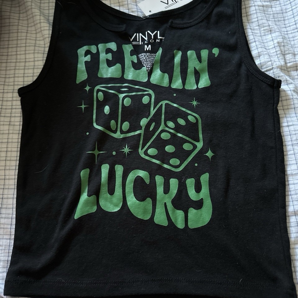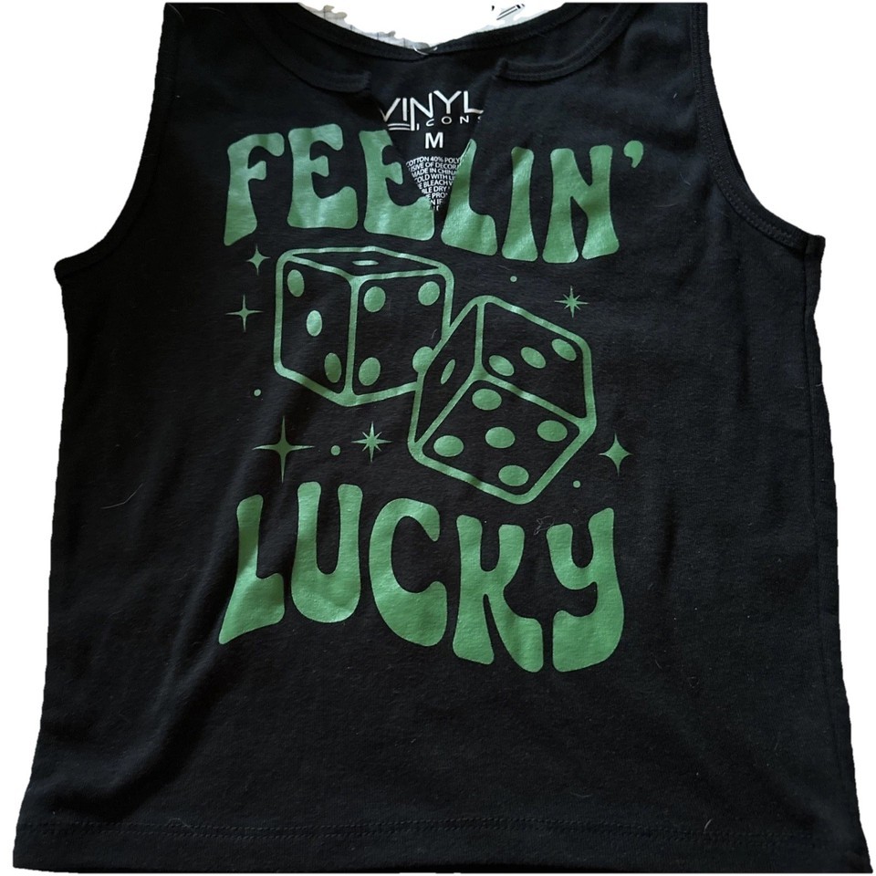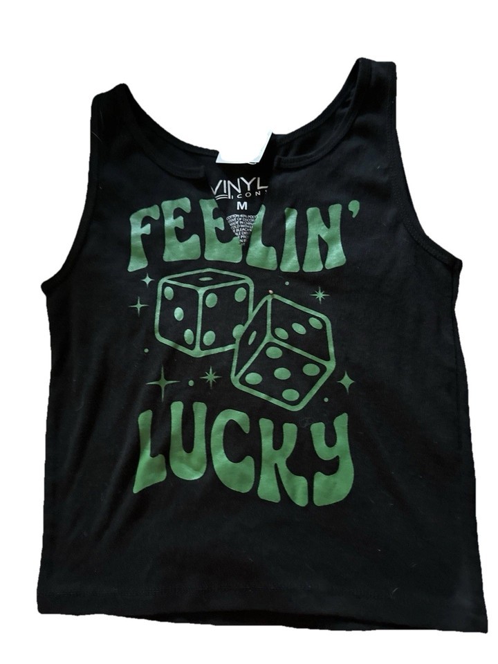 Vinyl Icons Feelin Lucky Tank Top Black Green Women's Size Medium NWT