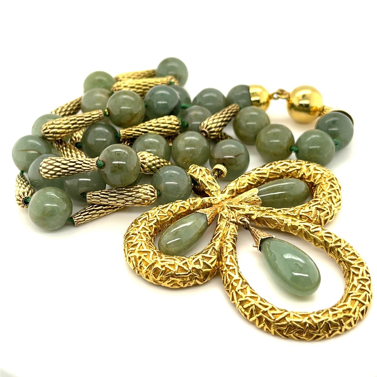 Features Jadeite Beads (11 - 12 mm) Alternating with 14k Gold Textured Beads