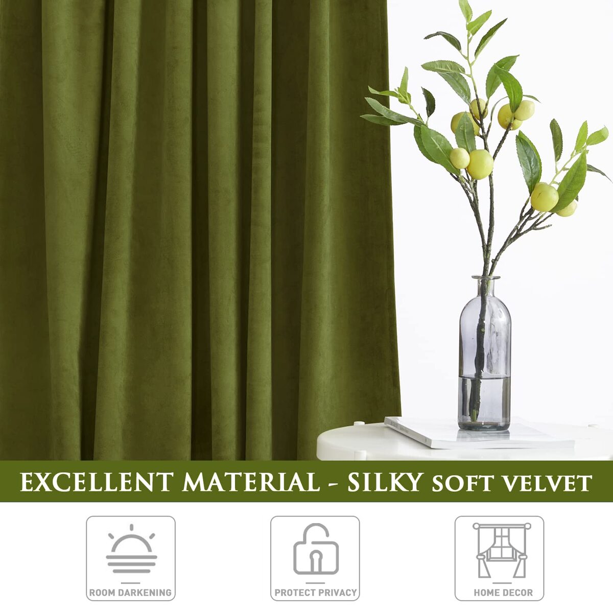 StangH Olive Green Luxury Velvet Curtains and 50 similar items