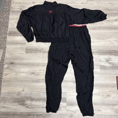 Vintage Nike Tracksuit Crop Jacket & Baggy Pants Womens M Black Red Nylon 80s