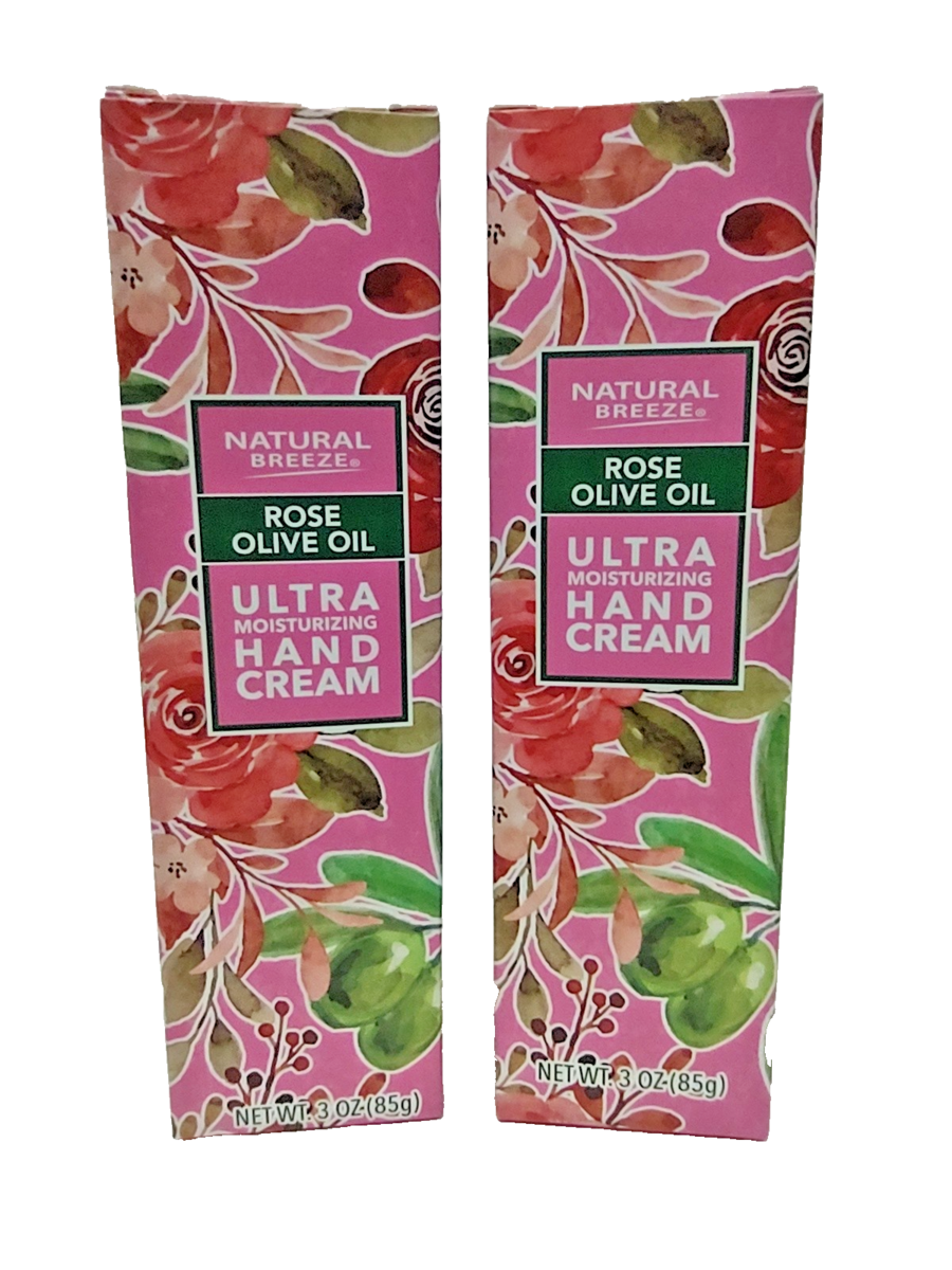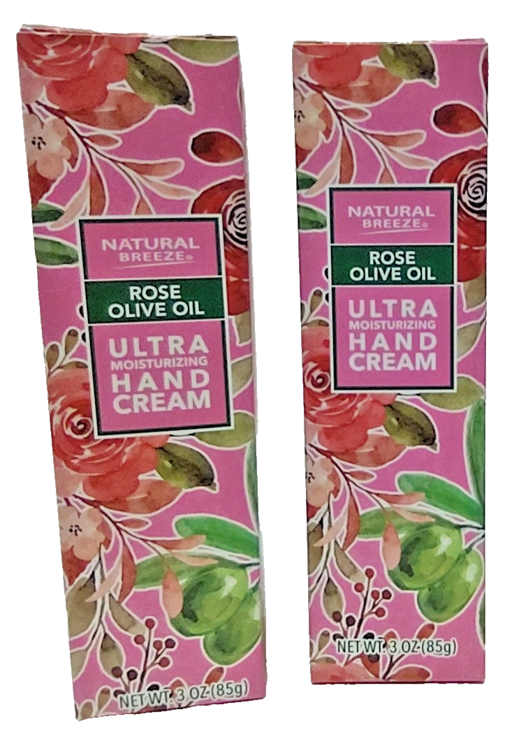 ( LOT OF 2 ) Natural Breeze NEW Rose Olive Oil Ultra Moisturizing Hand Cream, 3 Oz Each