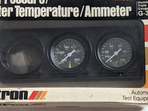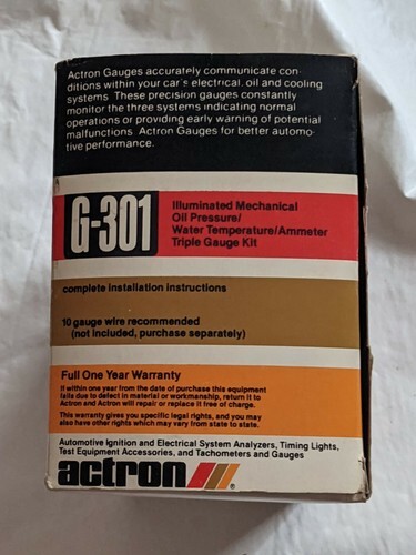 Up for sale is a new in opened box Actron G-301 Mechanical Oil Pressure Water Temp Illuminated Gauge Kit Black.