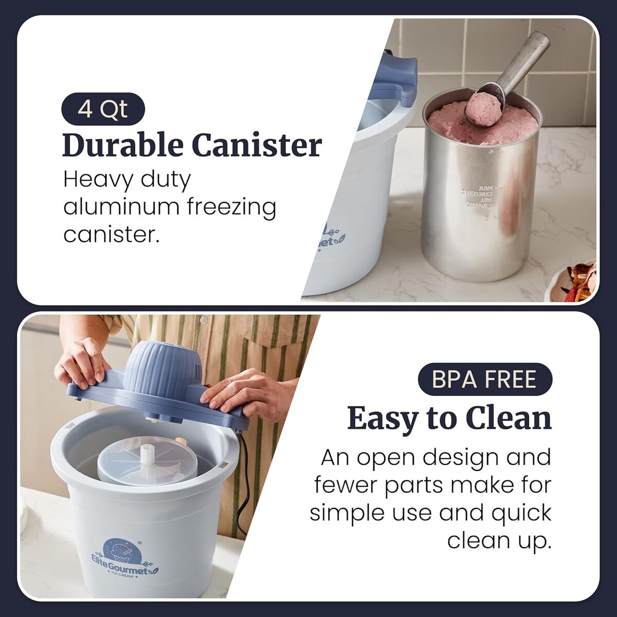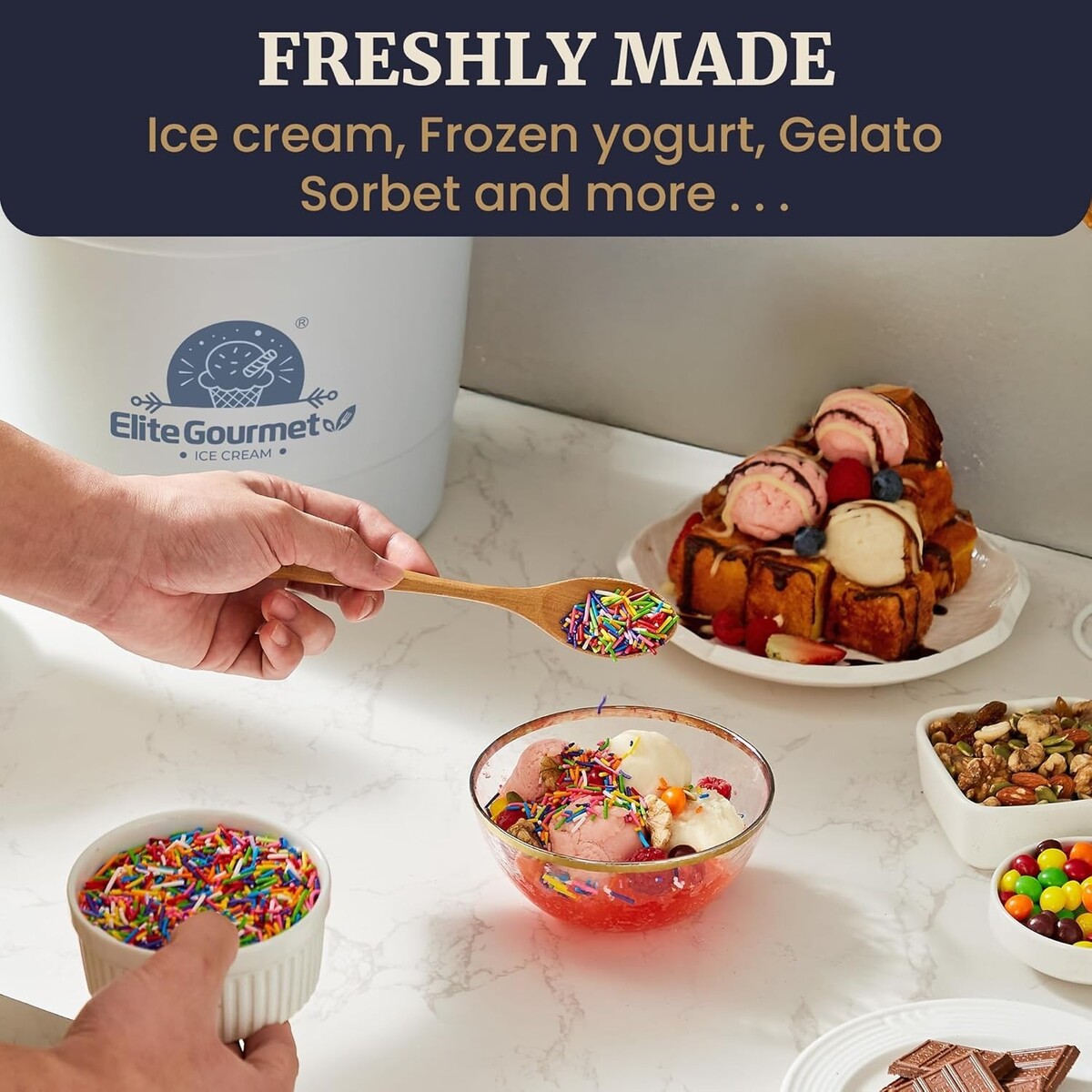 This new elite electric ice cream maker is designed for those who appreciate the joy of homemade frozen treats. With its heavy-duty aluminum canister and durable ice bucket, making a delightful array of ice creams, sorbets, and gelatos is faster and easier than ever.