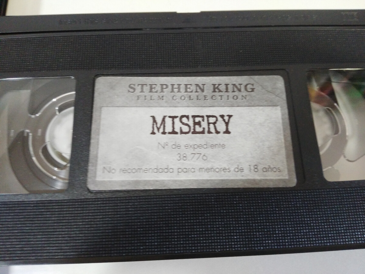 Stephen King, Miseria, Rob Reiner, James Caan, Kathy Bates, cinema de , suspense psicologica, film de , VHS spagnolo, nastro collettore, rareza VHS, videoclub, novita terroristica, cinema vintage, collezionismo VHS