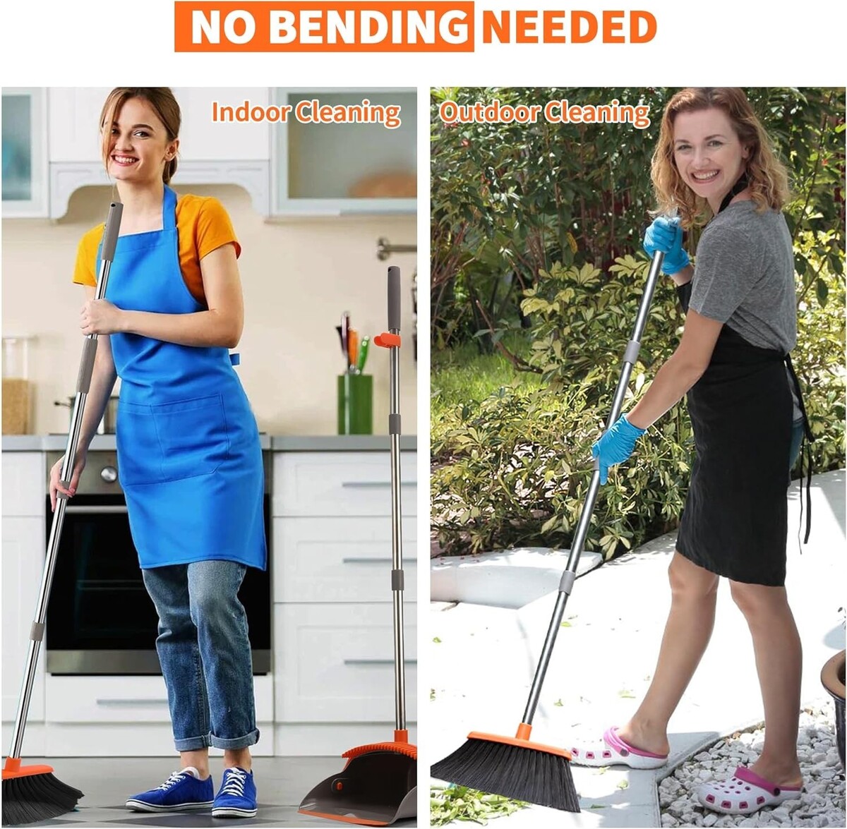 Compact Broom & Dustpan Set with 52-Inch Handle Perfect for Pet Hair Cleaning