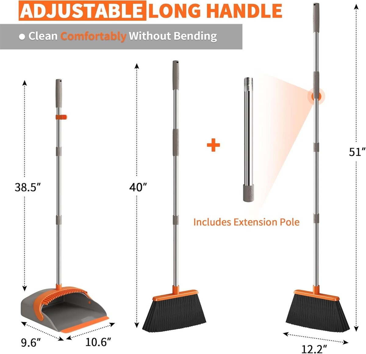 Ergonomic Adjustable Handle: Extends from 40 to 51 inches, allowing for comfortable, upright sweeping without bending, minimizing back pain.