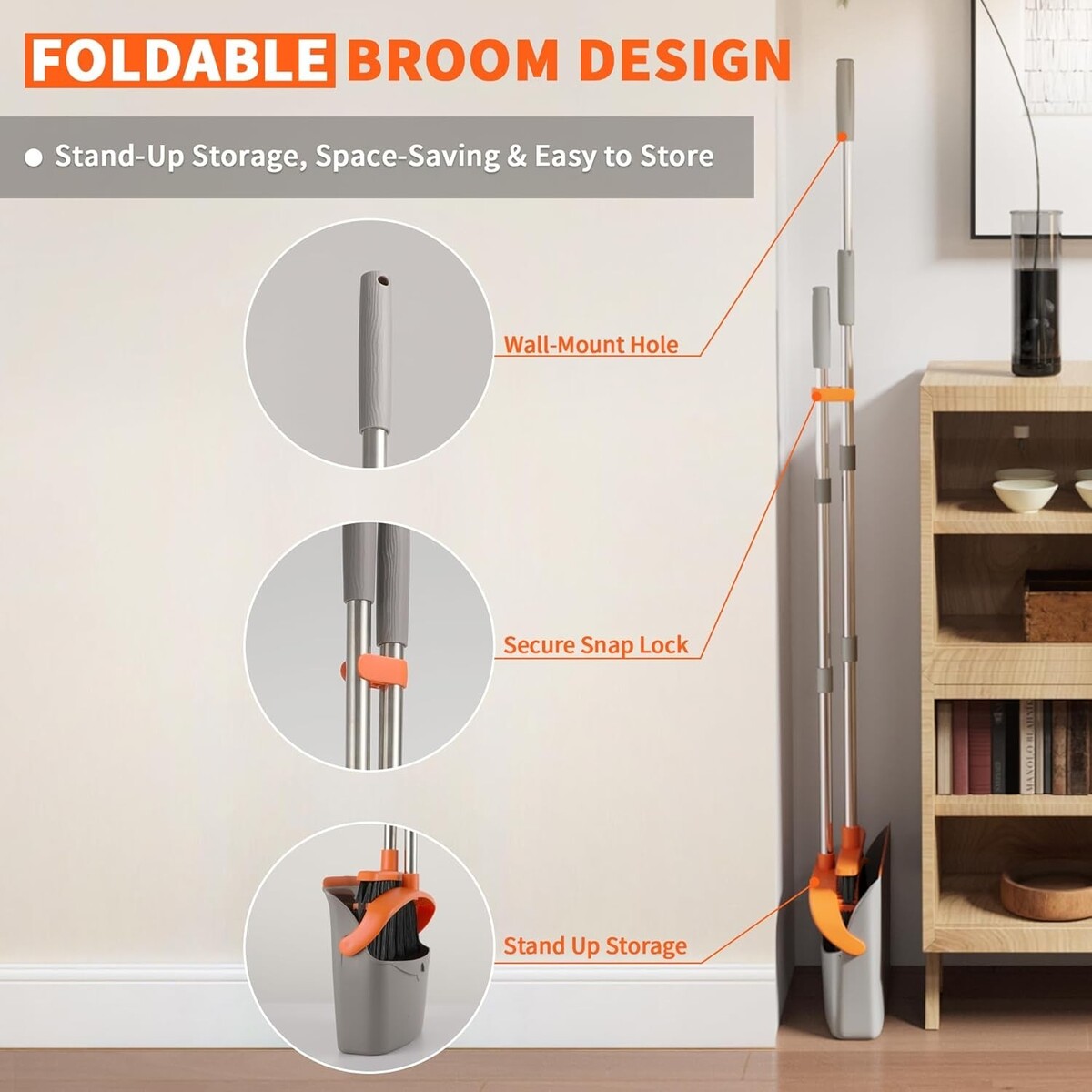 Compact Clip-Together Design: The broom and dustpan snap together for neat, upright storage, preserving space in closets, laundry rooms, or kitchen corners.