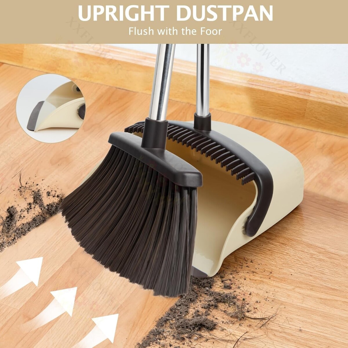 Upgraded Dustpan: Features built-in comb teeth to effortlessly remove hair, minimizing entanglement. The rubber lip is flush with the floor, ensuring every particle is captured.