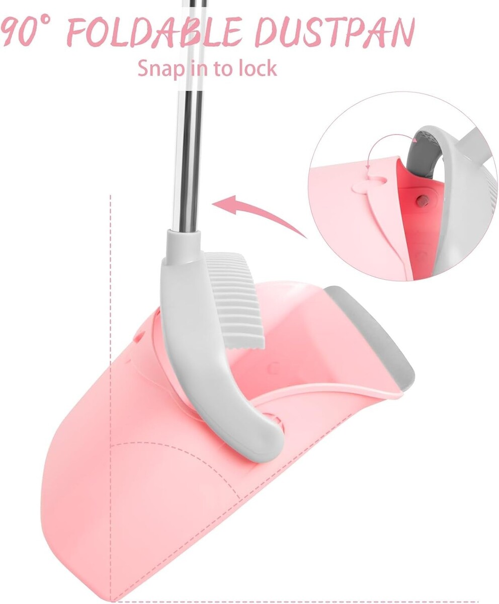 Versatile Broom and Dustpan Set, Pink Gray, Perfect for Indoor & Outdoor Use