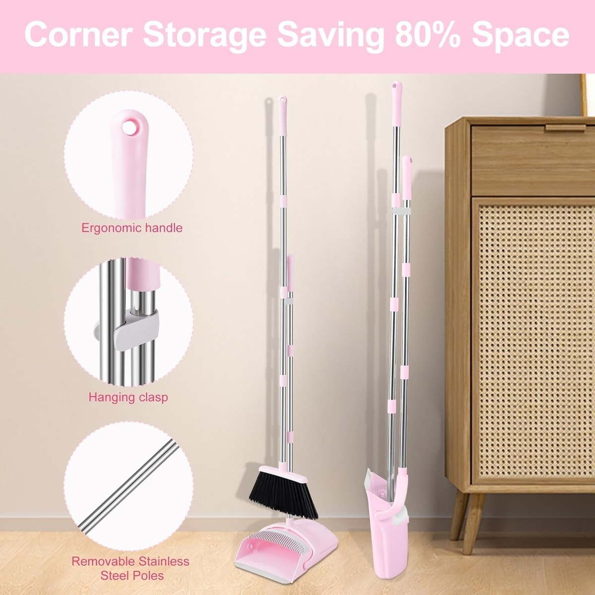 Embrace an elegant cleaning solution that suits your lifestyle. Make the Adjustable Pink Broom and Dustpan Combo a staple in your home today!