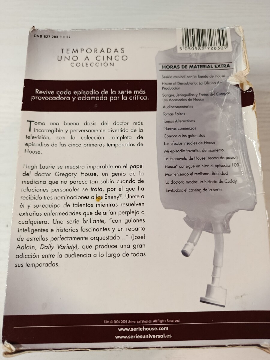 One de the most influential series de modern television, idealpara intense marathonsde medical dramacon dosede sarcasm, intelligence and humanity. This complete pack de the first cinco seasonsesperfectopara collectors, fansde Hugh Laurie or Loversdel medical genre. House MD, Hugh Laurie, medical series, complete seasons, Spanish English D