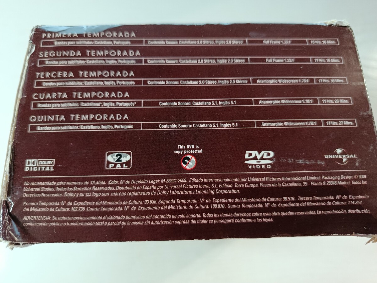 IN: 28-DVD box set featuring complete Seasons 1 to 5 of House MD, in Spanish and English. A TV gem full of medical mysteries, sarcasm, and wit.