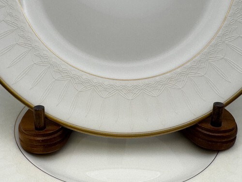 These salad / dessert plates measure 8 1/8" in diameter and are in very good condition with no chips, cracks, or excessive wear.