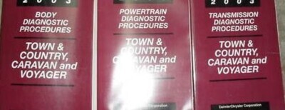 2003 Dodge CARAVAN/Chrysler Town Country/Plymouth Voyager Powertrain Diagnostics Procedures Manual/Body Diagnostics Procedures Manual/Chassis Diagnostics Procedures Manual/Transmission Diagnostics Procedures Manual.