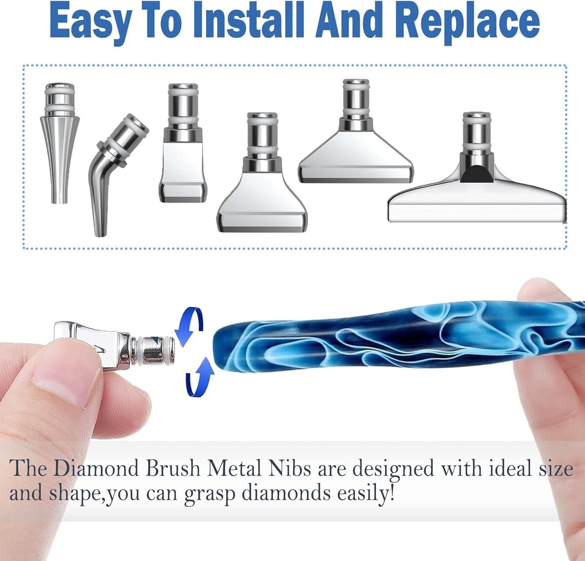 Installation is a breeze?simply connect the metal placer pen tips to the diamond brush.