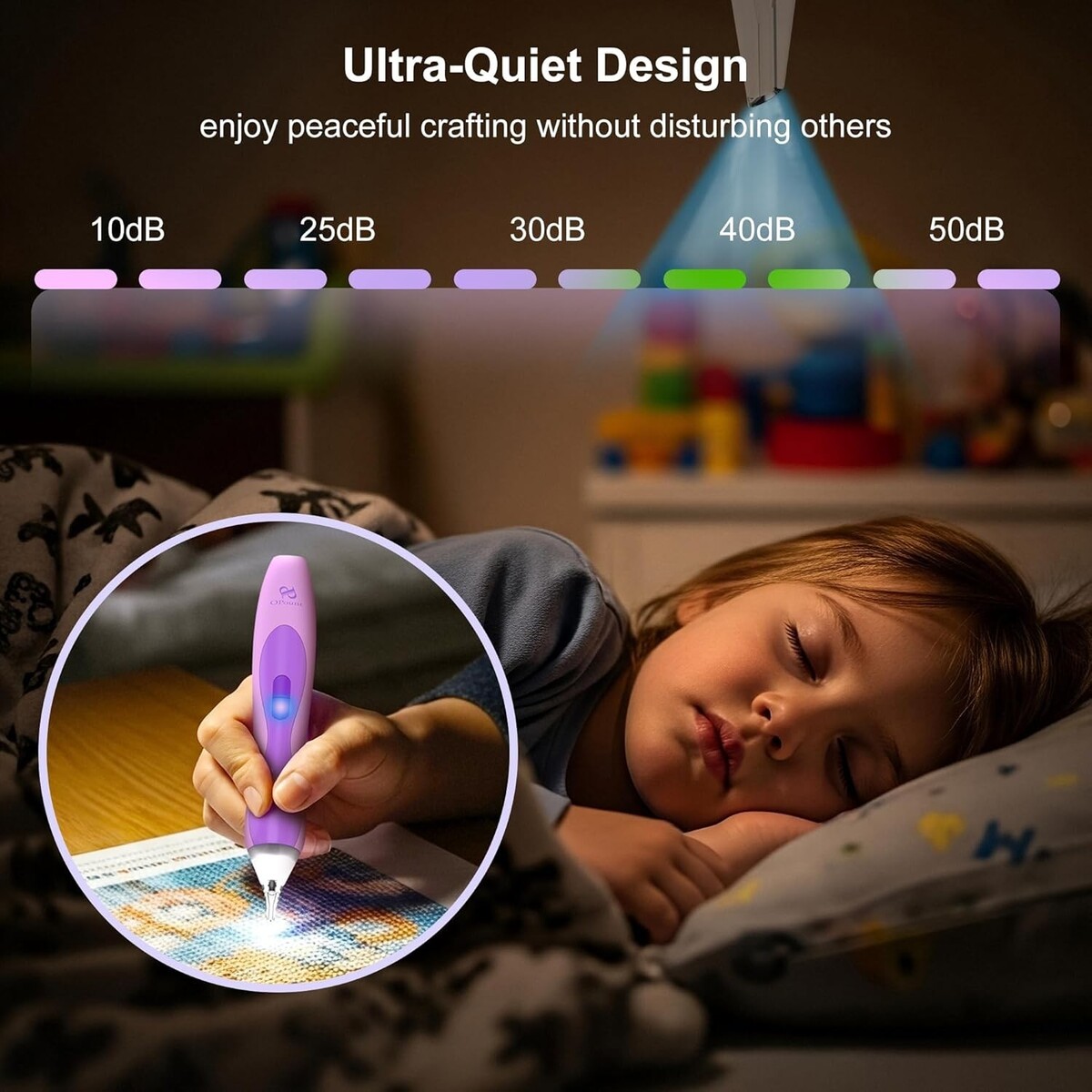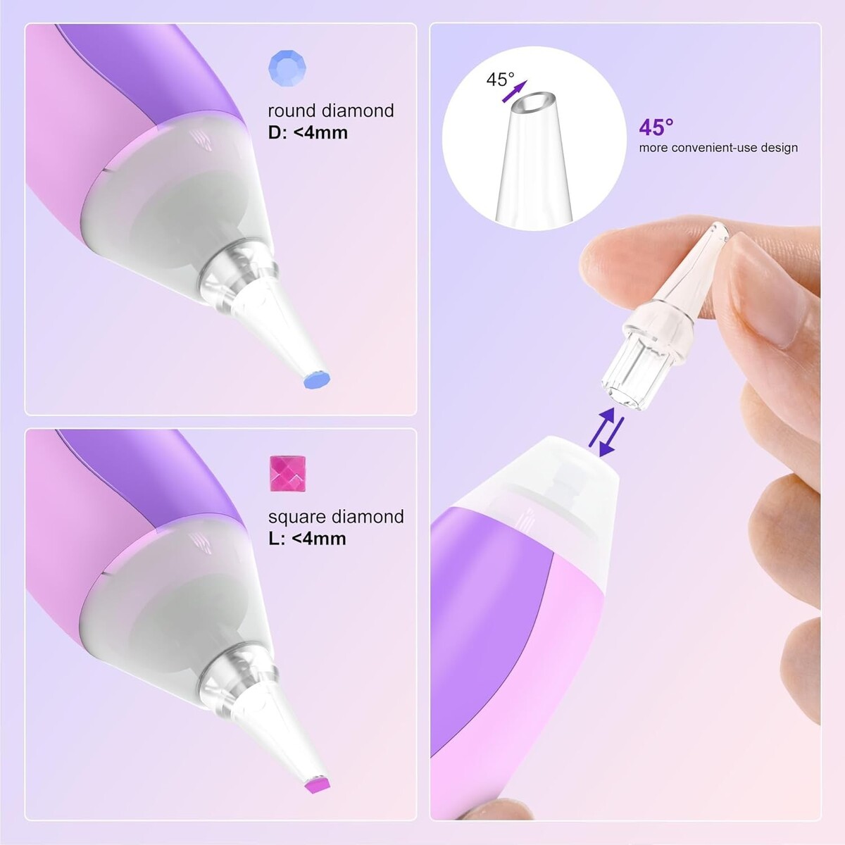 Features: With Light,Quiet Operation,Rechargeable,3 Brightness Levels,Ergonomic Grip,Extra Tips,Advanced Vacuum Technology,Precision Diamond Placement,Noise Level Below 50dB,LED Light for Visibility,Adjustable Brightness,Battery Powered,Compact Design,Automatic Power-Off Protection,Lightweight Construction,Soft-Touch Finish