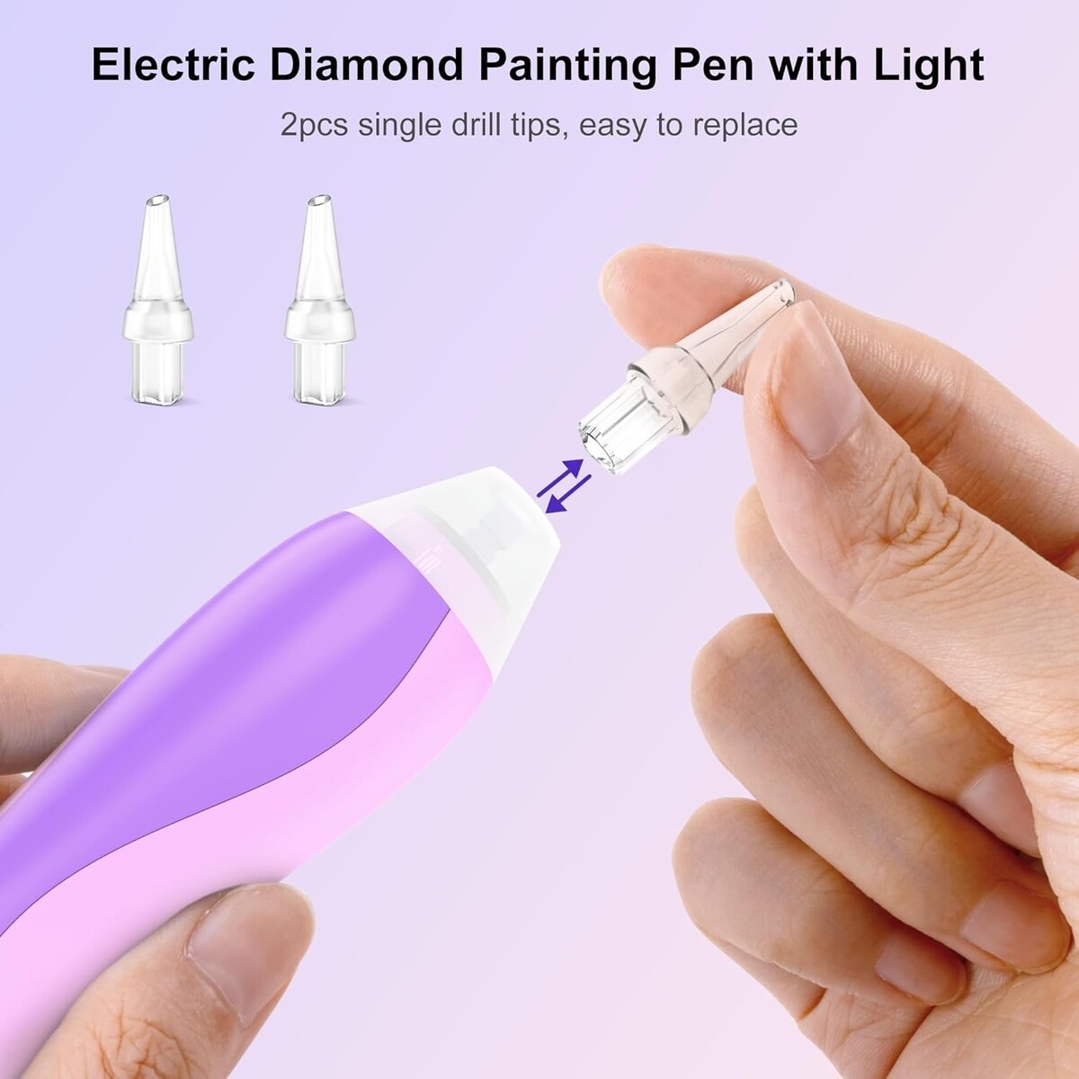 Bundled Items: Drill Tips,Electric Diamond Art Pen,2 Drill Tips,USB Charging Cable,Instruction Manual