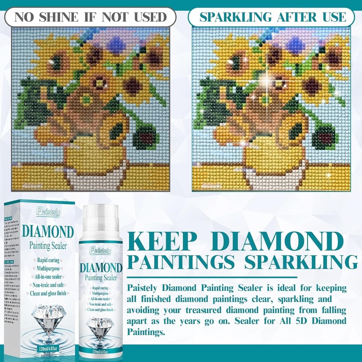 Elevate your crafting experience with our Non-Toxic Diamond Painting Sealer Glue. Keep the shine and vibrancy of your creations intact while ensuring they are safe and easy to maintain. With a simple application process and a commitment to quality, you can trust that your masterpieces will not only last but shine even brighter. Don't leave your hard work to chance?order your 120ml x 2 Bottles today and protect your artistry with confidence!