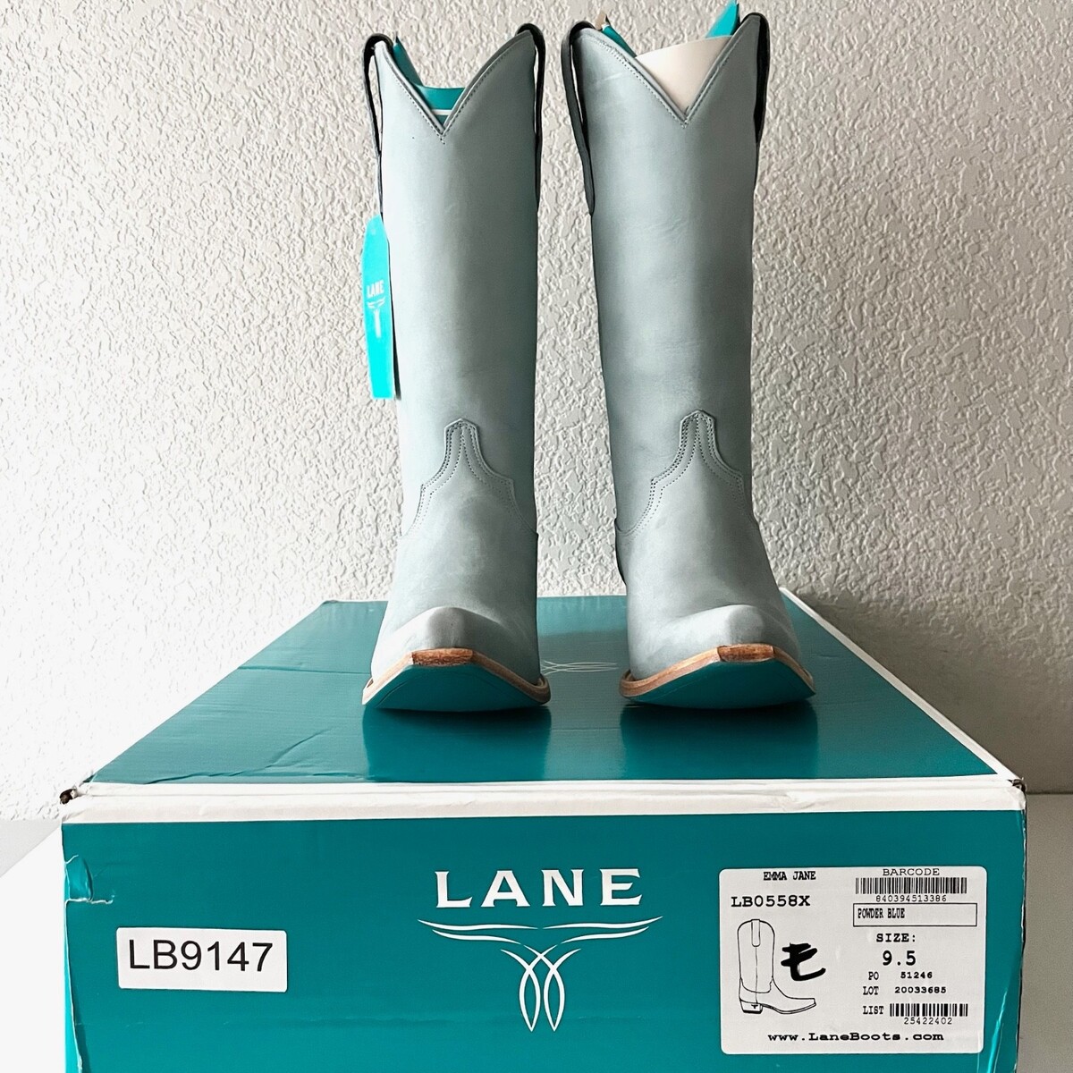 Lane EMMA JANE Powder Blue Cowboy Boots WesternCowgirl Mid Calf Tall Womens 9.5