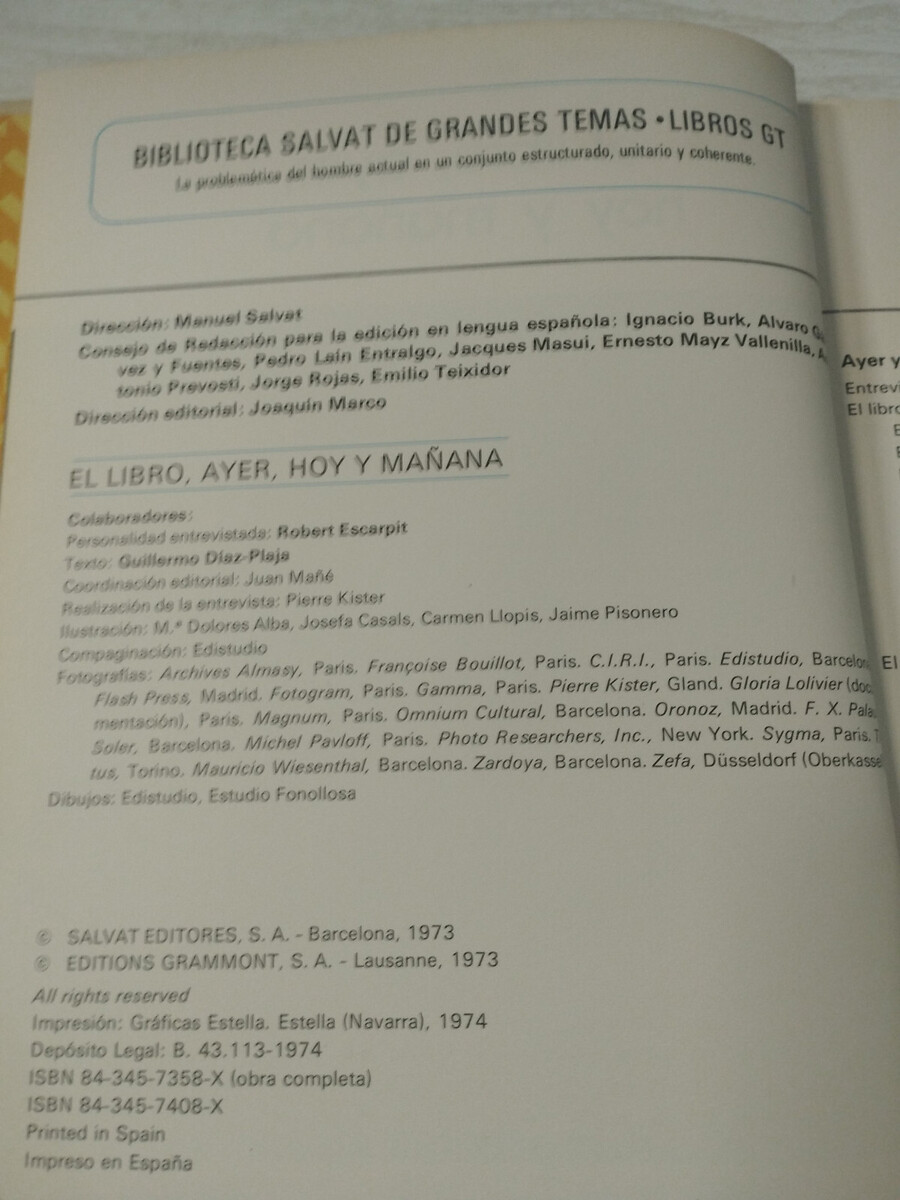 El Livre Yesterday Today Et Matin Bibliothèque Salvat grandes Thèmes 50 Spani Am
