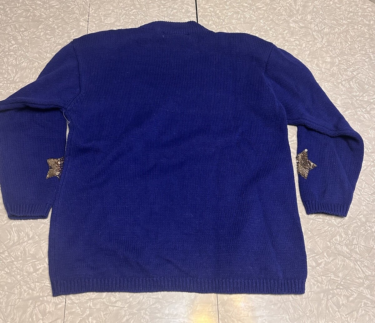 Vintage Shooting Star Sweater Whimsical Whimsigoth Blue Chunky 90s Moon Large