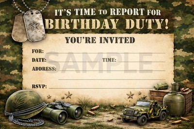 Camouflaged Camo Birthday party Invitations 12 With envelopes glossy