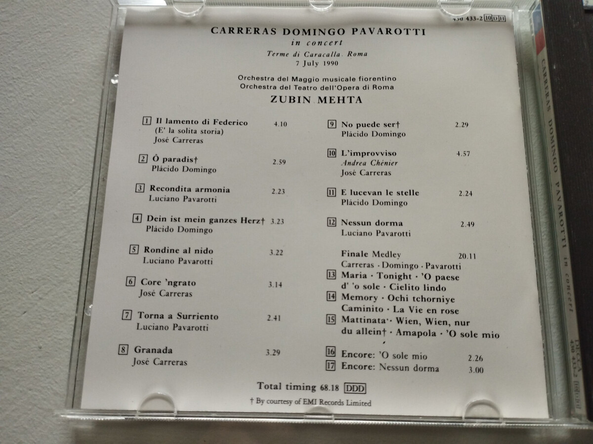 The Three Tenors Racing DOMINGO Pavarotti IN Concert Mehta Decca 1990 - CD Am