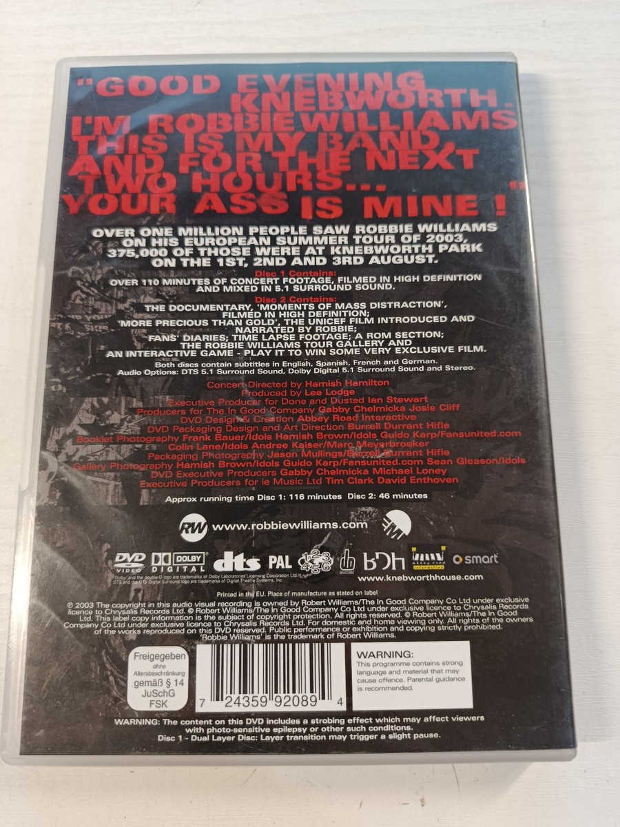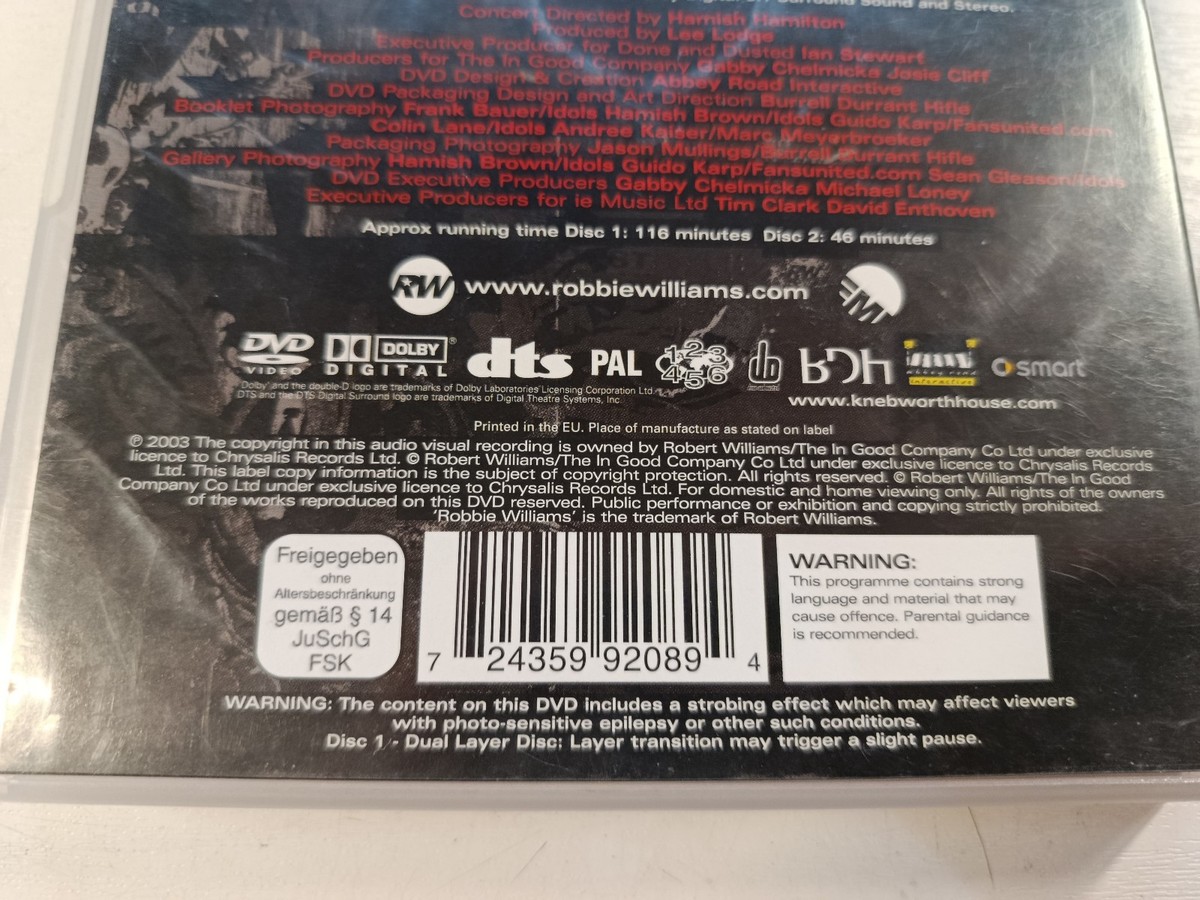 Robbie Williams, Live at Knebworth, What We Did Last Summer, Konzert-DVD, Pop-Rock-Musik, 2DVD, Robbie Williams live, EMI, Chrysalis Records, All Region, PAL, Live-Konzert, DTS- sonido , 2003, Musiksammlung, europaische Ausgabe