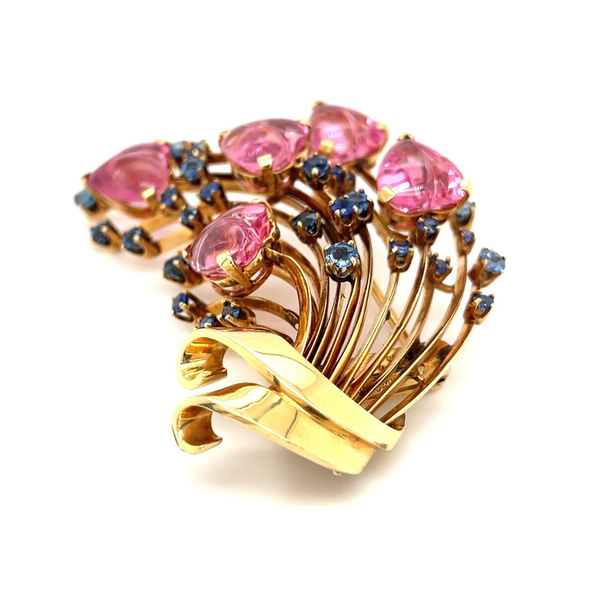 14k Yellow Gold Trabert and Hoeffer-Mauboussin Brouch w/ Pink Heart Tourmalines and 2.95 CT Sapphires #5528 38.9 Grams