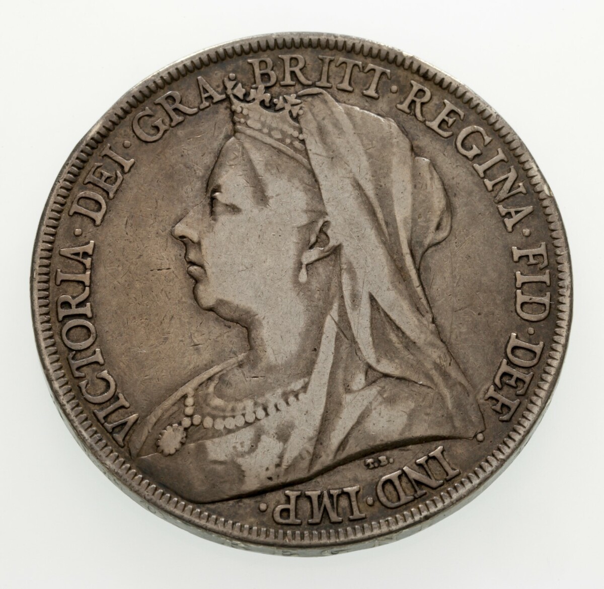 1900-LXIII Great Britain Crown Silver Coin (Very Fine, Rim Ding) KM# 783