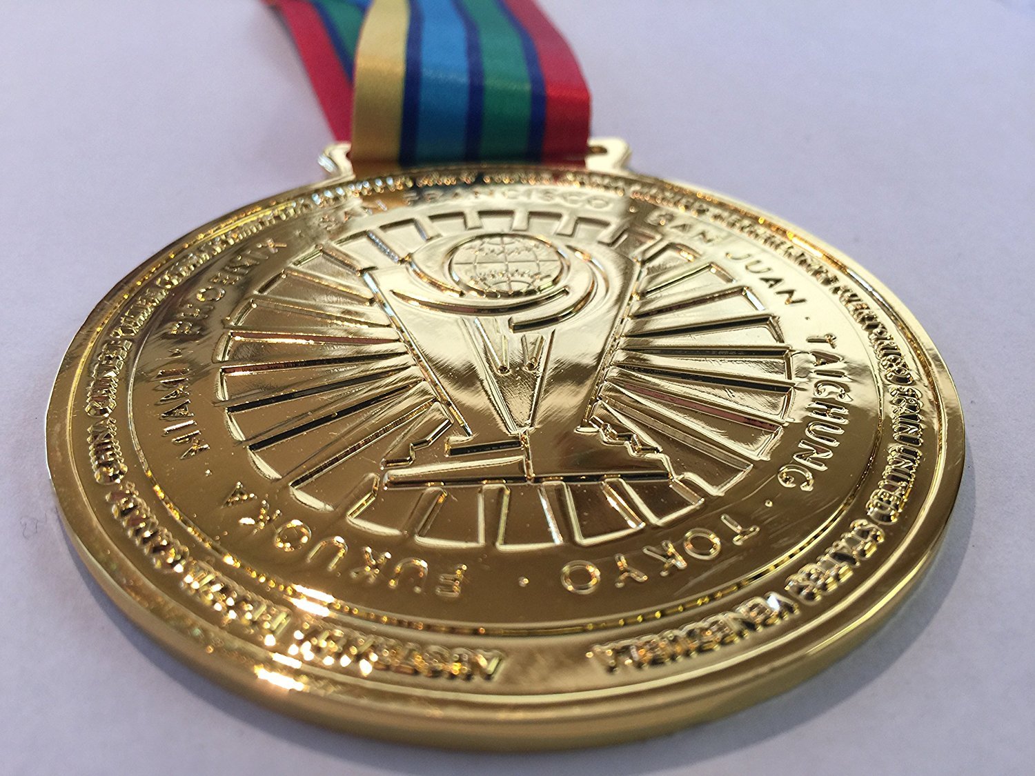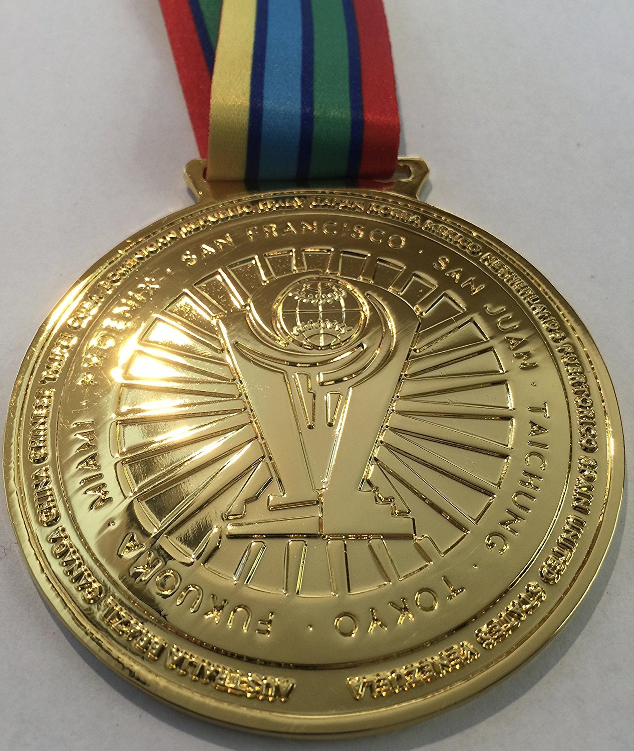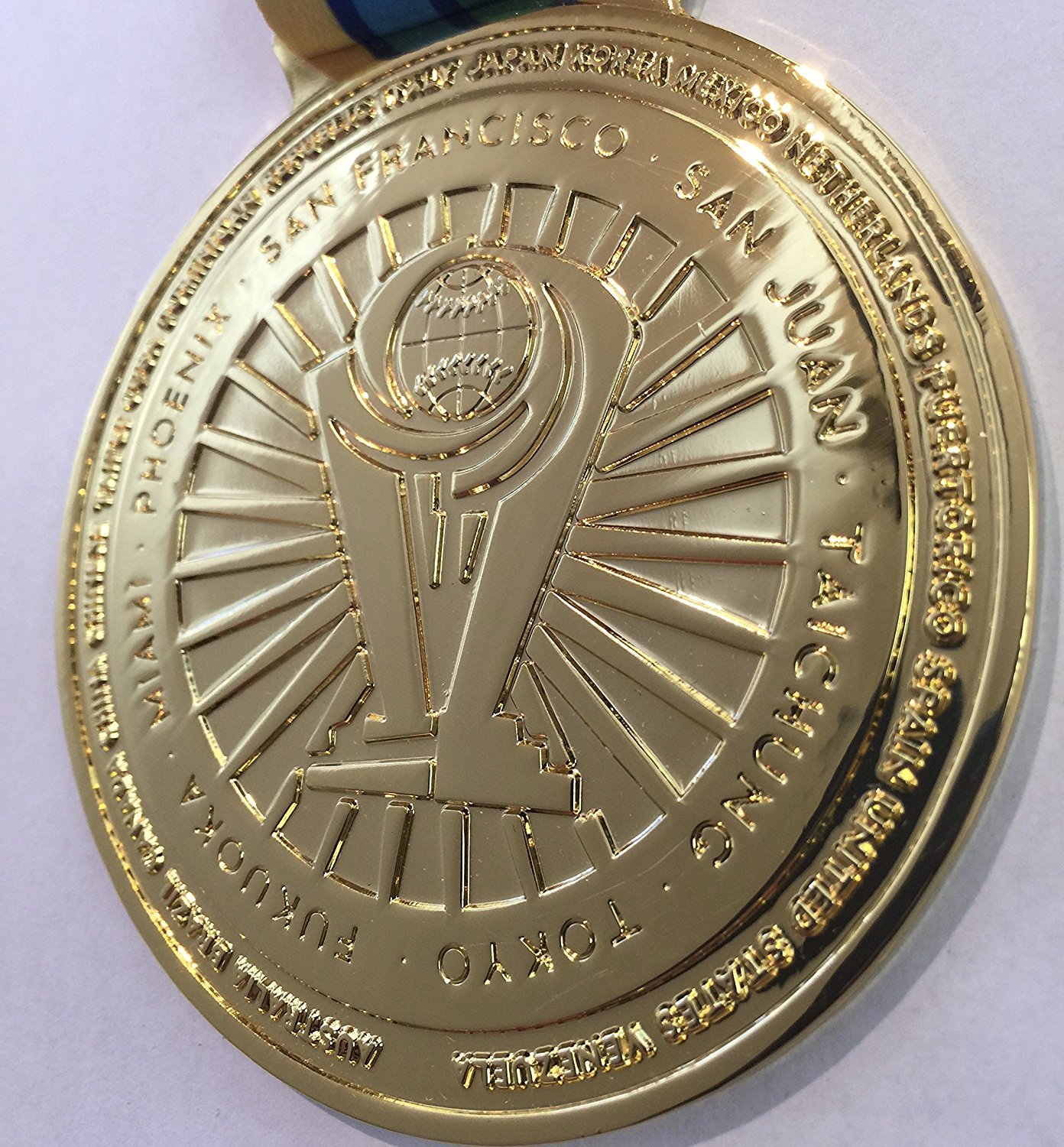 ON THE BACK OF THE MEDAL LISTED ARE THE HOST CITIES AND PARTICIPATING TEAMS