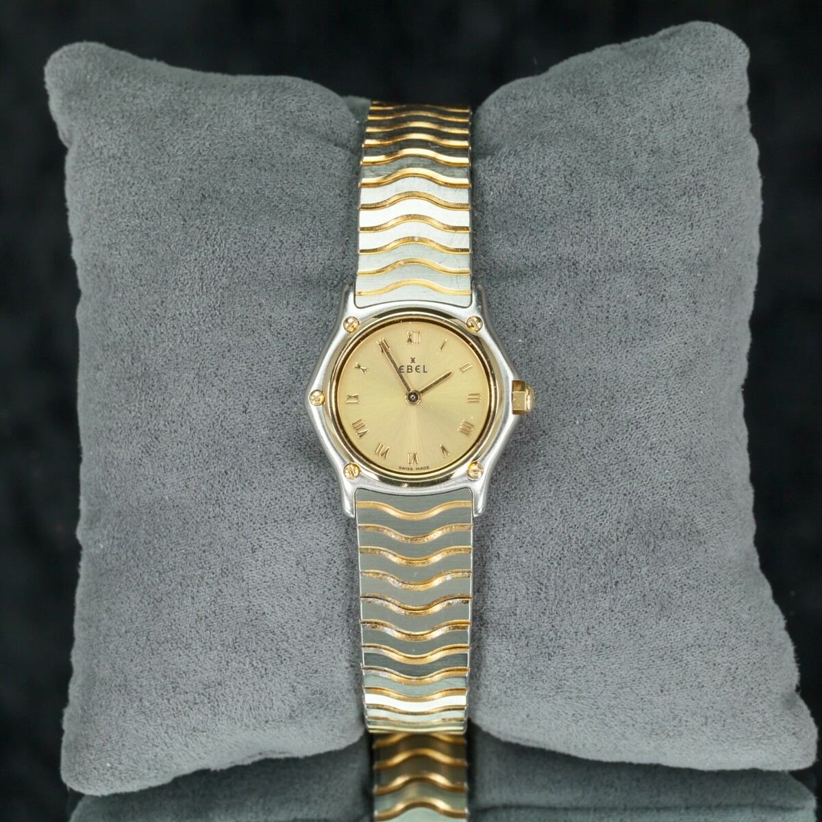 Ebel Women's Wave Two-Tone Stainless Steel Quartz Watch w/ Gold Dial 18208008 All shipments include insurance and delivery confirmation or signature confirmation. Local Pick-up is available in our showroom. All international packages will have the required customs declaration and value of order. Your continuing satisfaction is very important to us. We offer a 30 day money back return policy. If you are unhappy with your purchase for any reason, please notify us so that we can begin the returns process. All items for sale are available for viewing at our Southern California showroom. We would like to thank all of our loyal customers for their continued support. If you have any questions, comments or concerns, please click "Ask a question" below, and we will respond as soon as possible. T