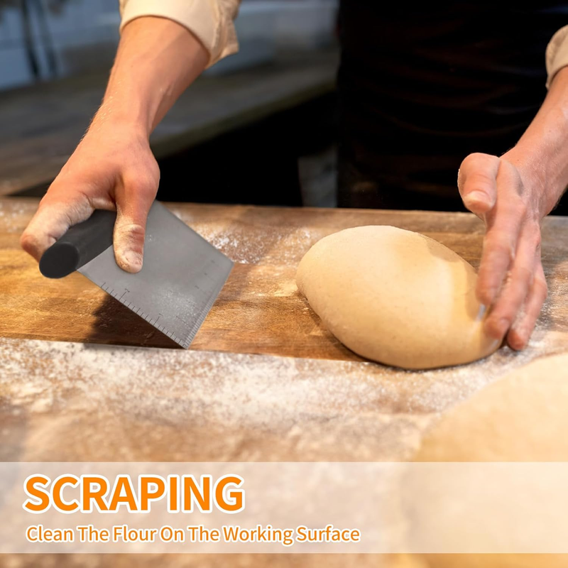 The bench scraper can cut,scrape, measure and even transfer dough.