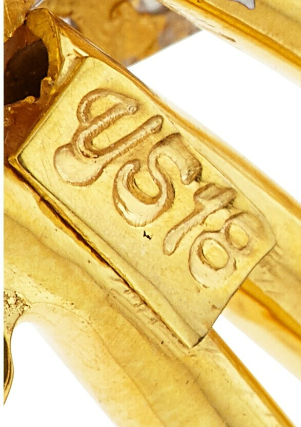 Overall Condition: Very Good. Marked "YS18". One Ruby, one sapphire, one emerald, and one diamond are chipped.