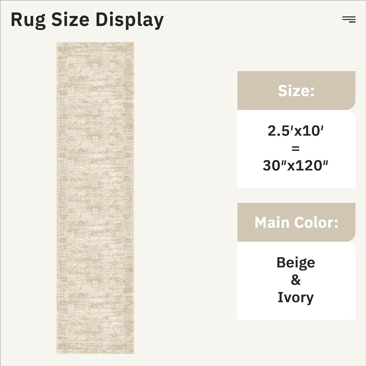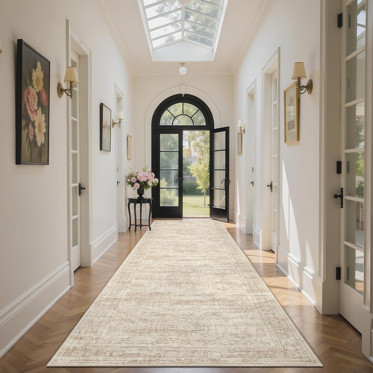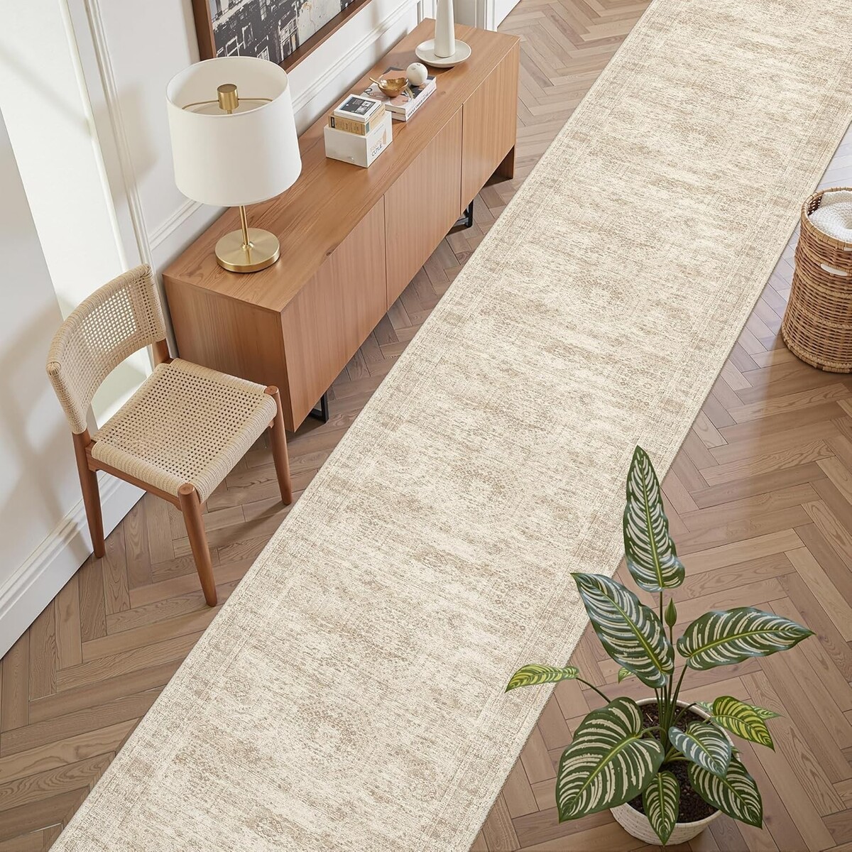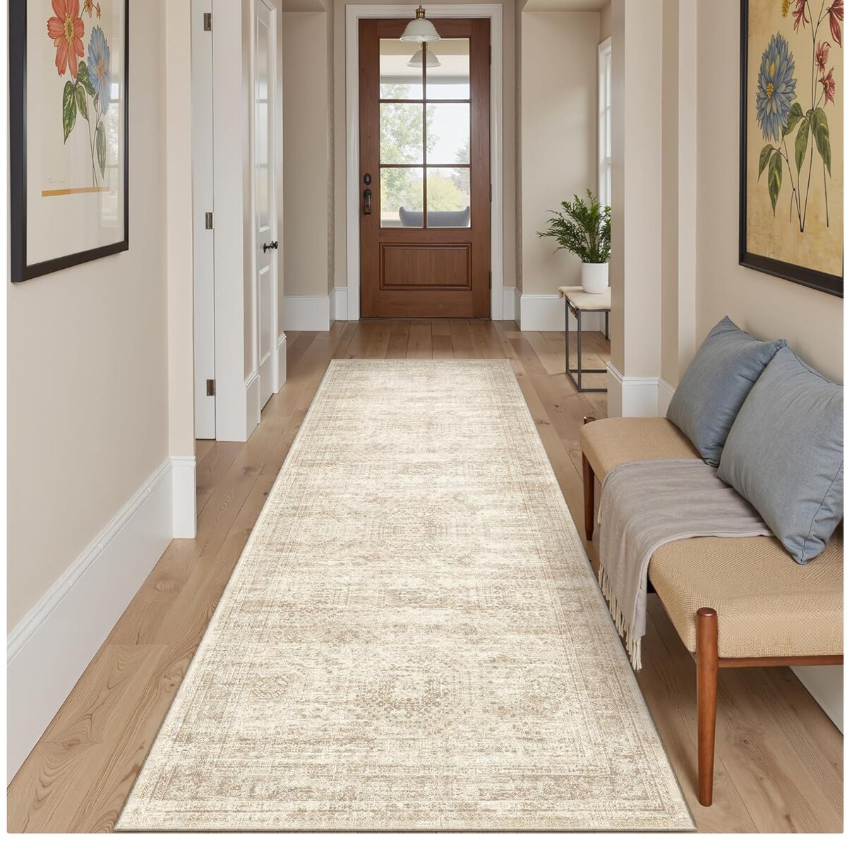 Elegant 2'6" x 10' Washable Non-Slip Vintage Runner Rug for Kitchen & Hallway