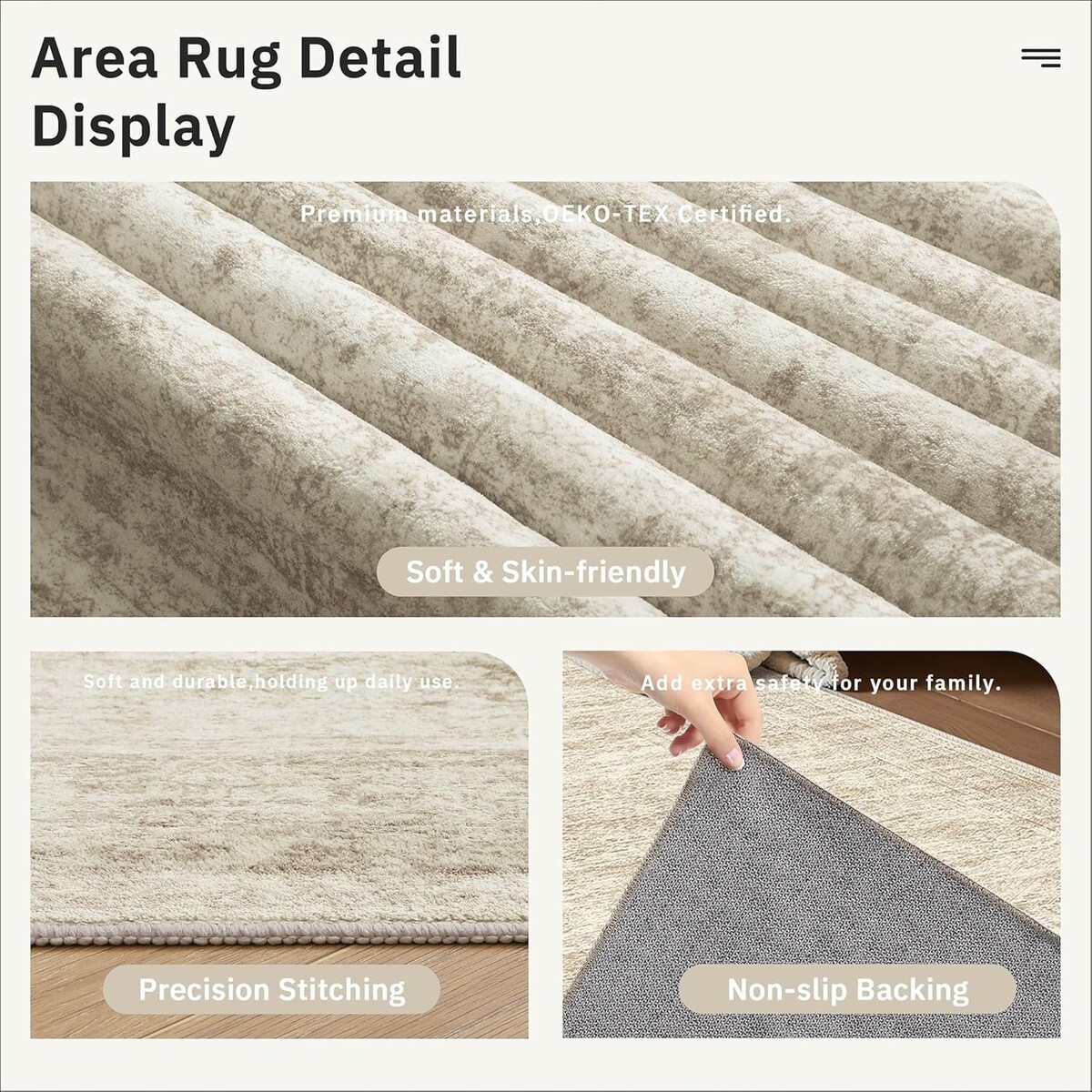 Washable/Non-Slip/Stain Resistant/Pet Friendly/Lightweight/Foldable |