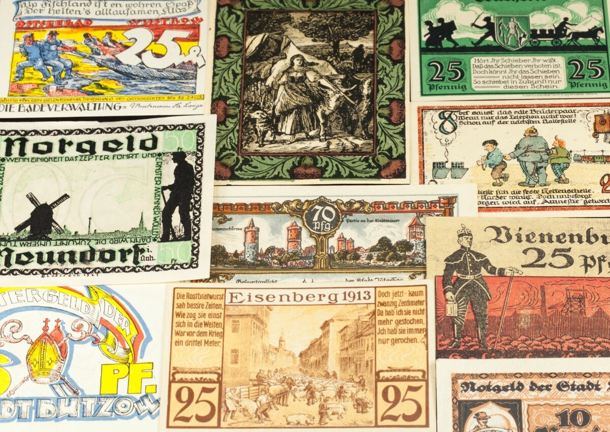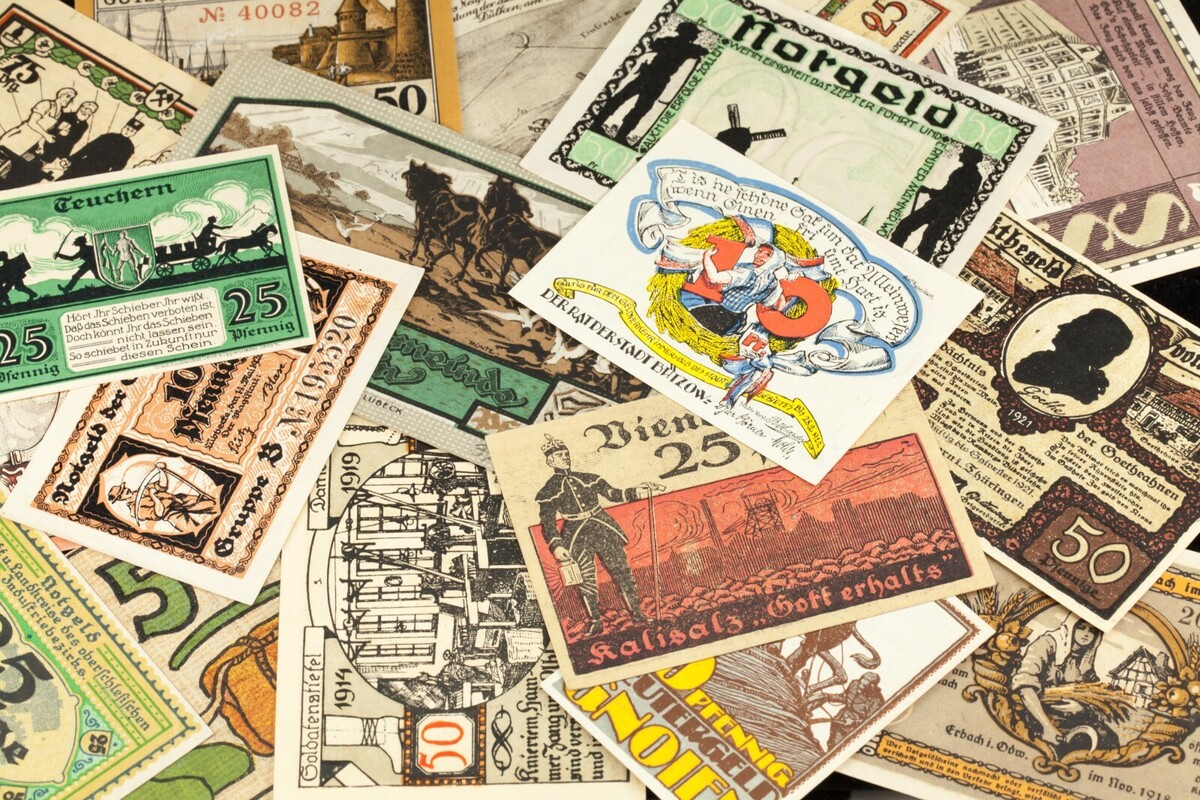 Notgeld (German for "emergency money" or "necessity money") refers to money issued by an institution in a time of economic or political crisis. The issuing institution is usually one without official sanction from the central government. This occurs when state-produced money is not available from the central bank. Issuing institutions could be a town's savings banks, municipality and private or state-owned firms.