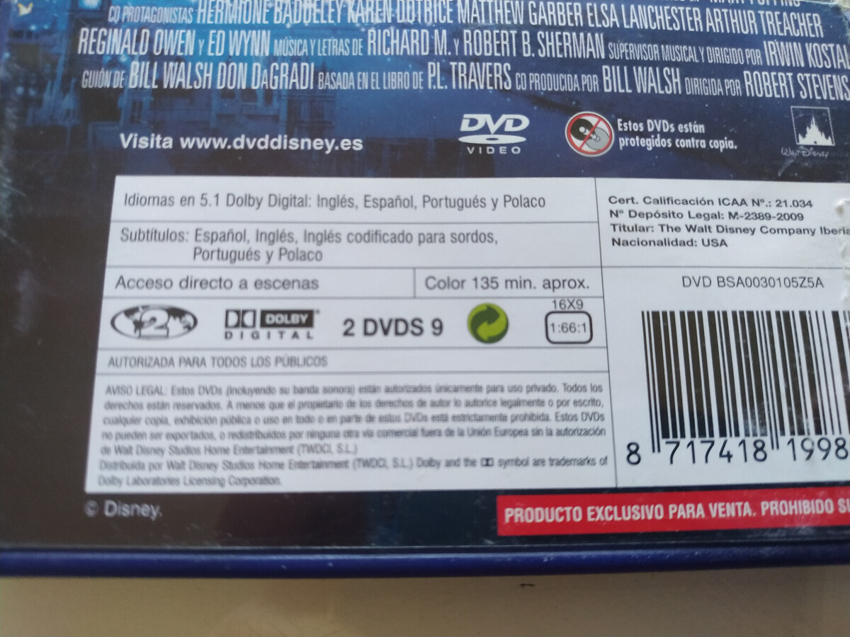 Mary Poppins WALT DISNEY Julie Andrews - 2 x DVD Spanish English Region 2 AM