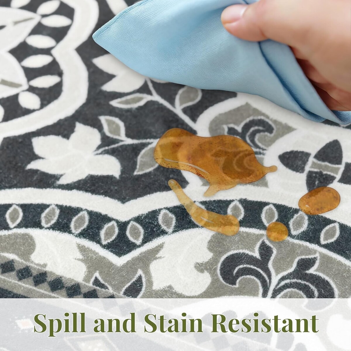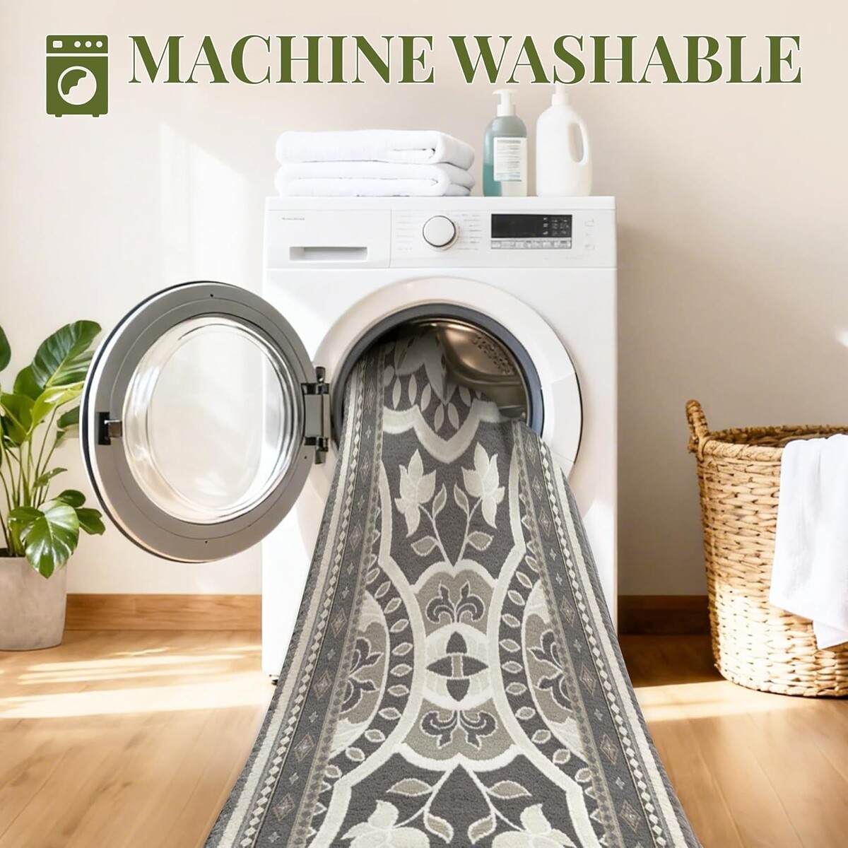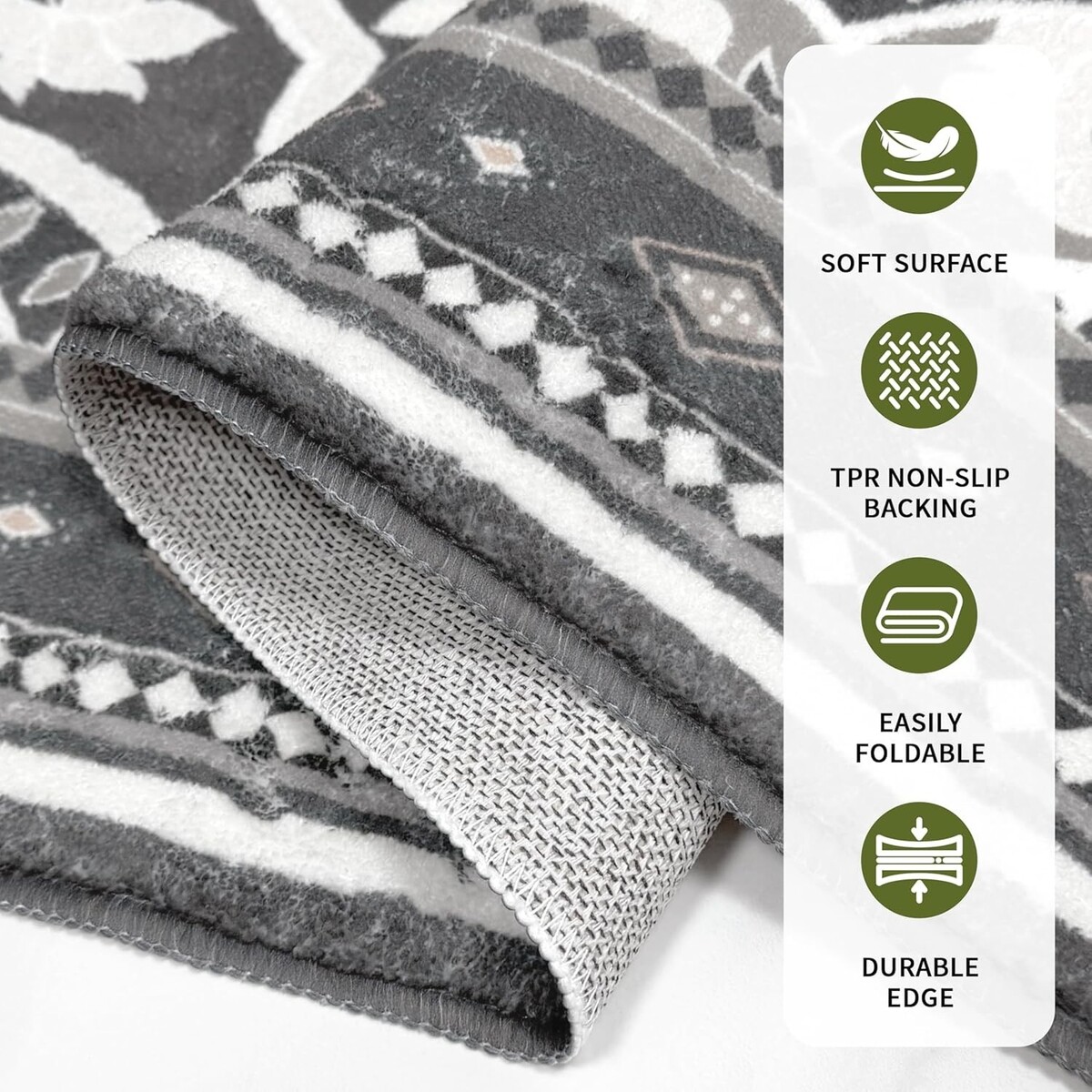 TPR non-slip backing keeps the rug securely in place, protecting floors from scratches.